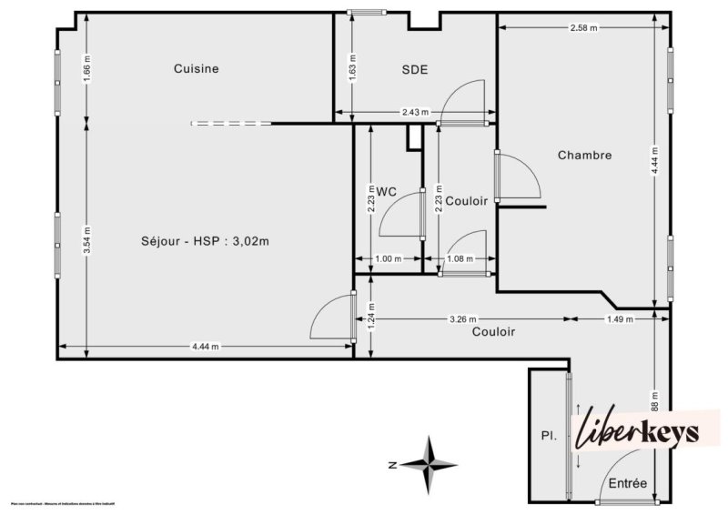Soigneusement agencé, il se compose d'une entrée spacieuse avec placard, d'un agréable séjour avec cuisine ouverte, aménagée et équipée, d'une chambre d'environ 11 m², d'une salle d'eau ainsi que de WC séparés.