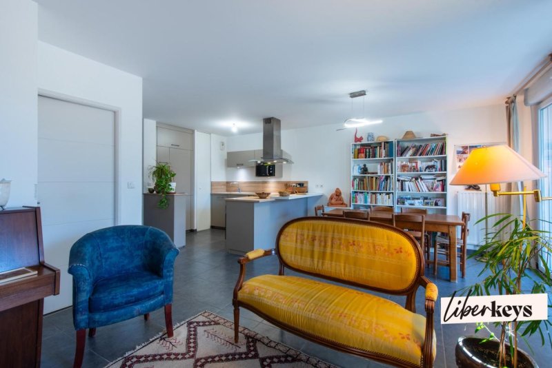 Situé au 2e étage avec ascenseur, il offre une superbe pièce de vie d'environ 35 m² comprenant une cuisine ouverte, aménagée et entièrement équipée, donnant accès à une terrasse sans vis-à-vis d'environ 14 m², un véritable espace extérieur idéal pour vos moments de détente.