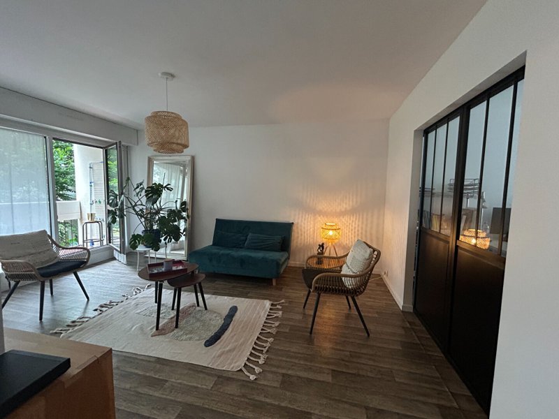 Dans une résidence calme et verdoyant en bordure du parc. Appartement 4 pièces comprenant entrée avec placard, séjour double lumineux donnant sur un balcon, cuisine aménagée, débarras, deux chambres dont une avec placard, salle de bains, WC. Place de parking en sous-sol.