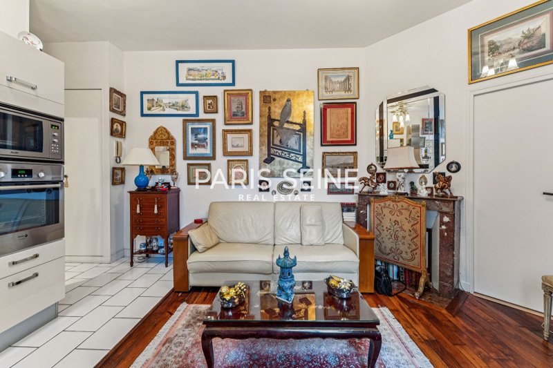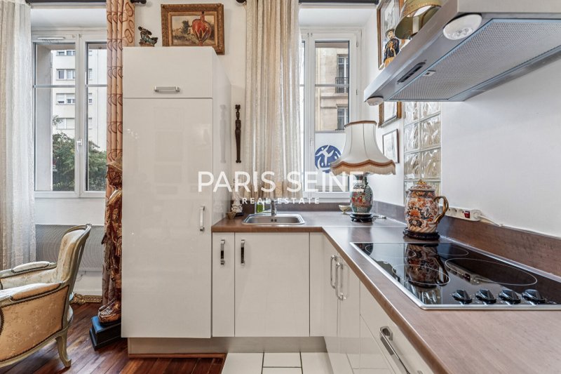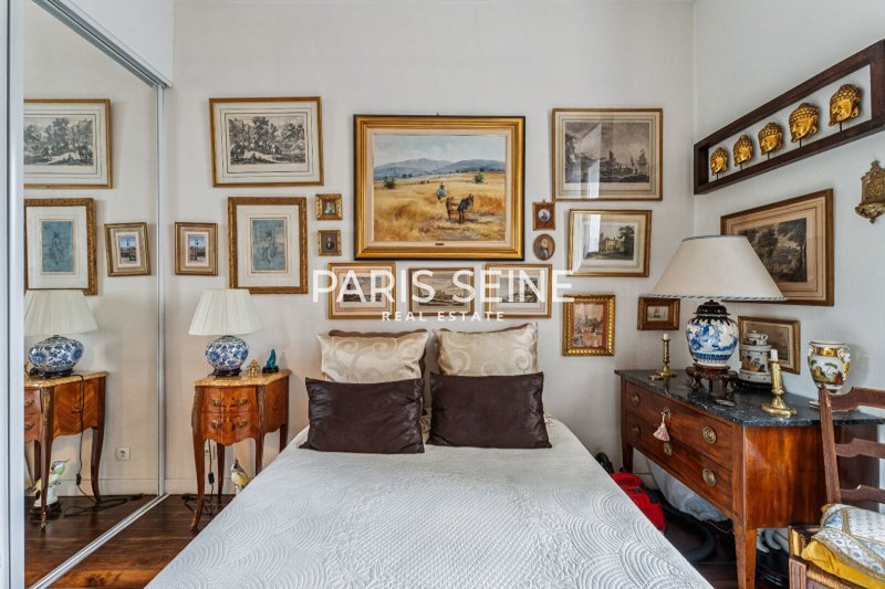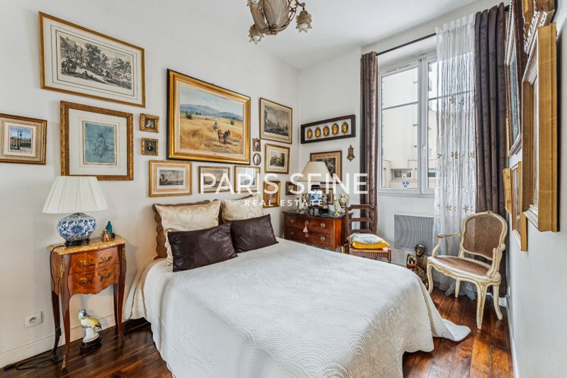 L'appartement possède une cheminée en marbre, une belle hauteur sous plafond et trois grandes fenêtres qui lui apportent une belle luminosité. Le parquet ciré et les éléments ancien lui confèrent le charme de l'ancien.