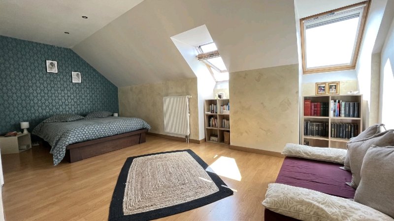 A l'étage: palier, deux chambres de 17 et 14m², salle d'eau, wc.