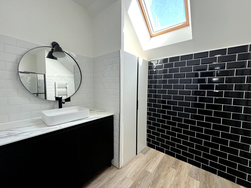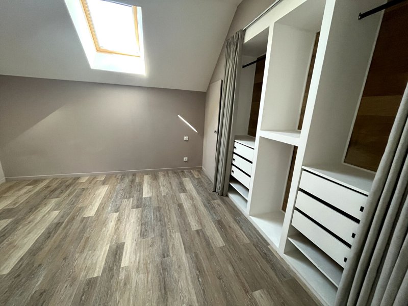 À l'étage, une chambre avec parquet ainsi qu'une salle d'eau composent l'espace nuit.