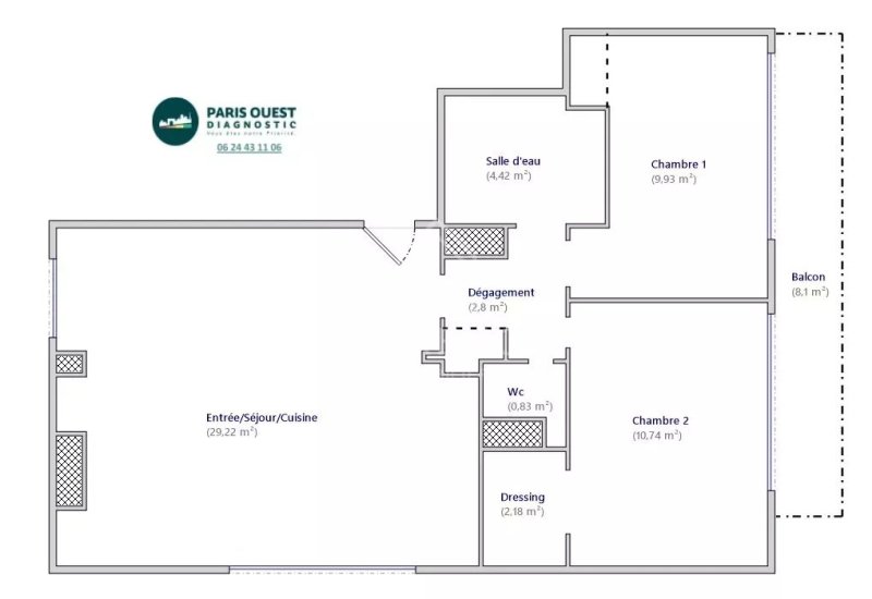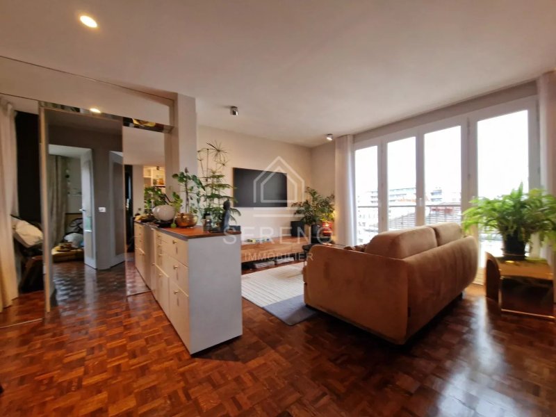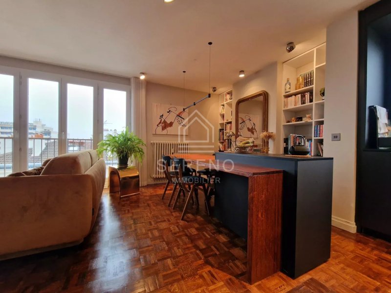 SERENO vous propose à Maisons-Alfort Centre, Avenue du Général De Gaulle, 5’ Gare RER, au 6è étage sur 7 d’un immeuble des années 1970 en bon état, gardien, parking, appartement très clair, vue dégagée, de 3 pièces, 60,12 m2 Loi Carrez comprenant entrée, séjour avec cuisine, dégagement, 2 chambres, salle de bains, WC, dressing, 3 placards, balcon filant de 8 m2, parking, cave.