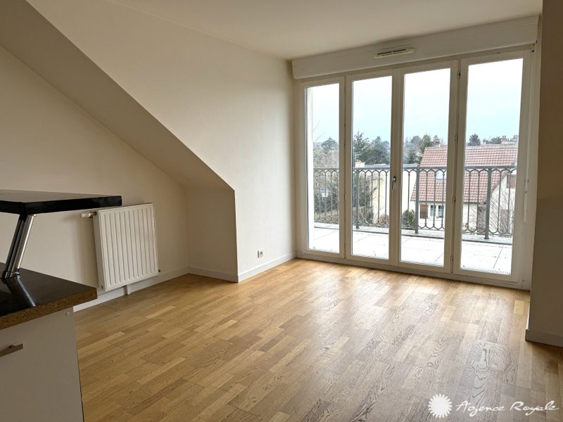 MAREIL MARLY 7' du TRAM Dans Résidence de Standing de 2016 avec ASCENSEUR, au DERNIER ETAGE, bel appartement de 47,13m² Carrez (51,10m² au sol) avec BALCON et vue dégagée sans vis à vis : Entrée avec placard, Pièce principale sur Balcon Ouest avec Cuisine aménagée, Chambre, grande Salle de douche avec WC. PARKING SOUS-SOL boxable. Commerces à proximité. AGENCE ROYALE - Elsa KROULEFF, à vos côtés pour tous vos projets immobiliers depuis 1988.