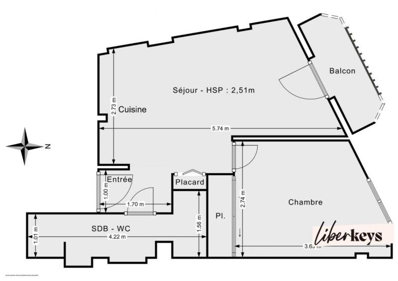L'appartement se compose d'une entrée, d'une pièce de vie lumineuse de 15 m² ouverte sur un balcon de 2 m², d'une chambre de 10 m² et d'une salle de bains de 4 m².