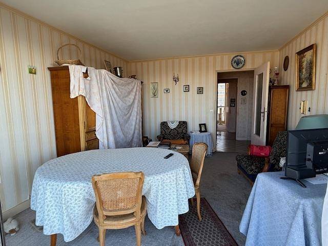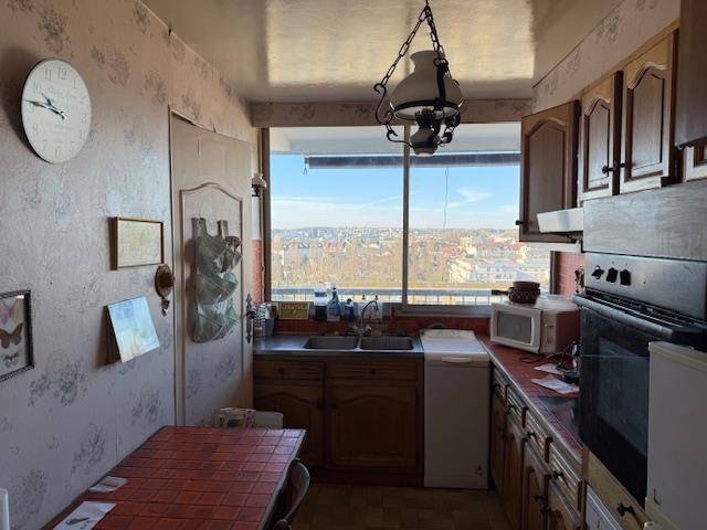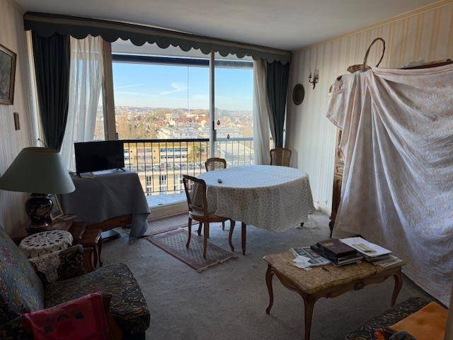 EXCLUSIVITE - A DEUX PAS DE LA FUTURE STATION DE LA LIGNE 18 DU GRAND PARIS EXPRESS - Dans une résidence avec ascenseur et ravalée récemment, appartement traversant à rénover de 4 pièces principales représentant 74,22 m² et 75,89 m² au sol, orienté est/ouest et bénéficiant de vues dégagées : entrée avec placard, salle de séjour prolongée par une loggia, cuisine indépendante et cagibi attenant accès à cette loggia, dégagement desservant 3 chambres ouvrant sur autres loggias, sdb, wc, débarras. Cave.
