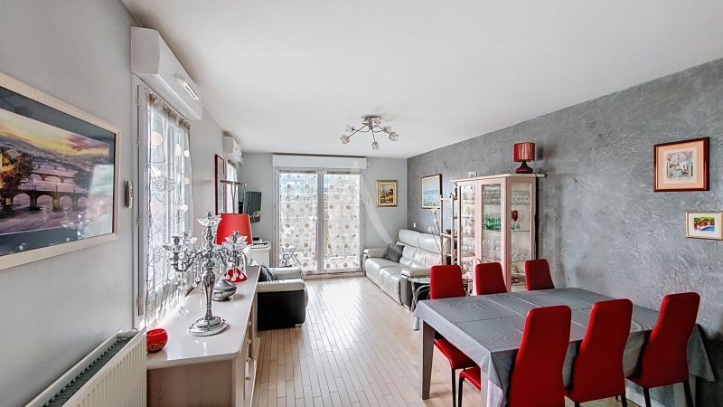 Cet appartement prêt à vivre comprend également trois chambres avec placards, dont une avec accès au balcon, une salle de bains avec espace buanderie, une salle d'eau et un wc.