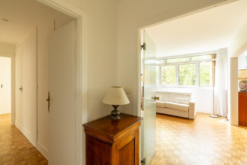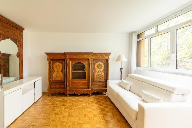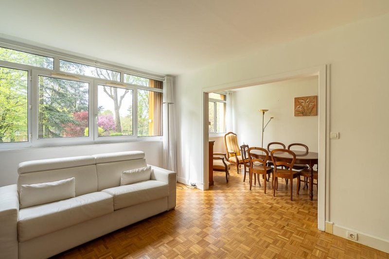 L'espace de vie généreux se compose d'un séjour double baigné de lumière naturelle, idéal pour partager des moments en famille ou entre amis. Le parquet préservé ajoute une touche d'élégance à l'ensemble.