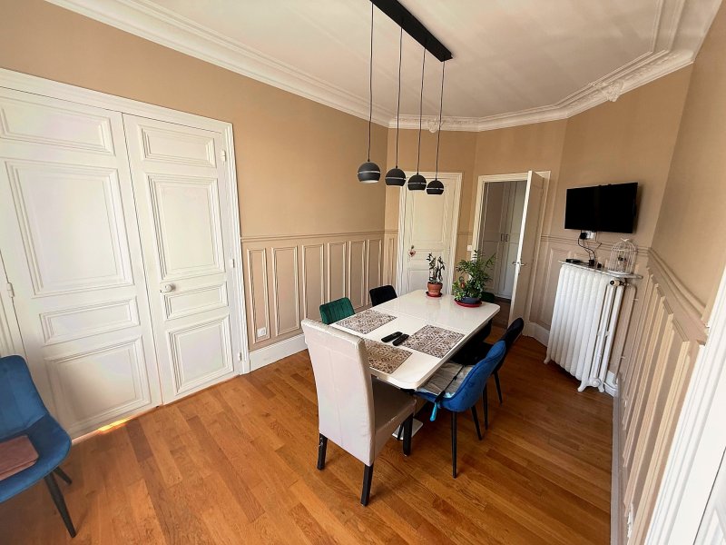 Un bien rare sur le marché, idéalement positionné dans un secteur résidentiel prisé, alliant calme, qualité de vie et praticité du quotidien. Niché au sein d'une petite copropriété soignée de seulement 10 lots, cet appartement en rez-de-chaussée de 106 m2 incarne un équilibre parfait entre confort, espace et prestations haut de gamme. Une situation géographique idéale, implanté dans un environnement calme et verdoyant, ce bien bénéficie d'une localisation stratégique à proximité immédiate de la gare et de toutes les commodités -- commerces, services et axes de transport -- vous permettant de concilier sérénité résidentielle et accessibilité optimale. Un emplacement qui séduira aussi bien les familles que les actifs en quête d'un cadre de vie agréable. Un appartement lumineux et généreux Dès l'entrée, la hauteur sous plafond de 2,90 m impose une sensation immédiate de volume et d'élégance. L'exposition plein sud baigne l'ensemble du logement d'une lumière naturelle généreuse tout au long de la journée, créant une atmosphère chaleureuse et accueillante en toutes saisons. Le plan de distribution est parfaitement pensé : une entrée spacieuse et accueillante introduit un grand salon-séjour communicant avec la salle à manger, idéal pour recevoir ou profiter de moments en famille. L'espace de vie offre une superficie remarquable, rare pour un rez-de-chaussée, et confère à ce bien un caractère résolument atypique. Les deux chambres, lumineuses et bien proportionnées, offrent tout le confort nécessaire pour un repos de qualité. La grande salle d'eau, agrémentée d'un coin buanderie intégré, répond à toutes les exigences du quotidien avec praticité et élégance. Une rénovation complète, aucun travaux à prévoir Ce bien a fait l'objet d'une rénovation intégrale soignée. Il ne nécessite strictement aucun travaux : vous pouvez vous projeter immédiatement, sans contrainte ni surcoût. L'installation électrique est exempte de toute anomalie, garantissant une totale sérénité technique. Des prestations rassurantes et économiques La copropriété, composée de seulement 10 lots, est parfaitement entretenue et affiche des charges particulièrement maîtrisées. Le bon classement énergétique du bien vous assure des dépenses de chauffage raisonnées, un atout non négligeable dans le contexte actuel. En complément, l'appartement dispose d'une double cave ainsi que d'une cave simple, offrant un espace de rangement considérable, appréciable pour optimiser votre organisation au quotidien. Une opportunité rare, à saisir sans attendre.
