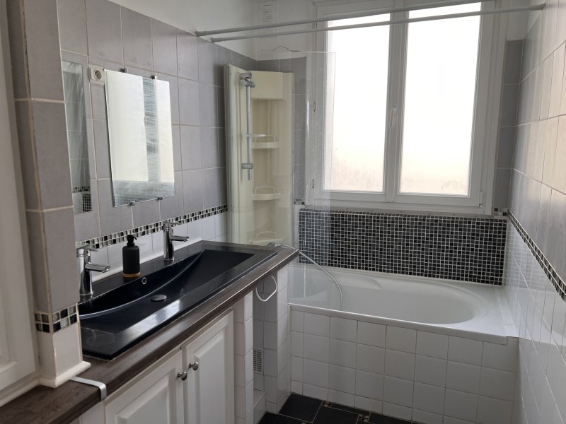Montesson Centre, dans une petite copropriété ravalée et parfaitement entretenue, appartement de trois pièces principales en rez-de-chaussée surélevé sur jardin : il se compose d'une entrée, séjour lumineux sur balcon, cuisine indépendante équipée, dégagement menant aux deux chambres, salle de bains, rangements, une grande cave avec électricité en sous-sol. Chauffage individuel au gaz, double exposition.