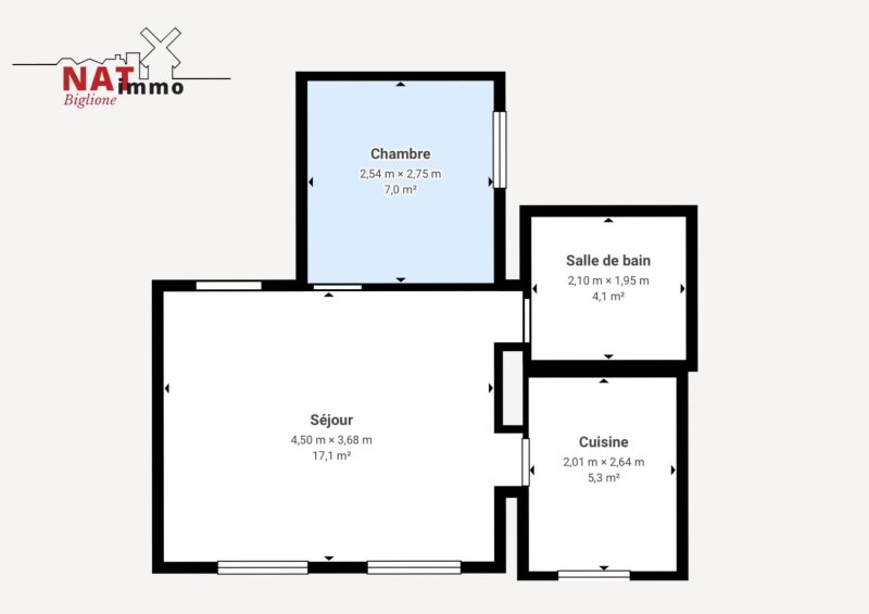L'appartement est très bien agencé avec un séjour de 17m2, suivie d'une cuisine de 5m2, d'un espace nuit séparé de 7m2 et une salle de bain avec wc. Entièrement repeint en blanc, l'appartement dispose de fenêtres en double vitrage PVC très récentes.