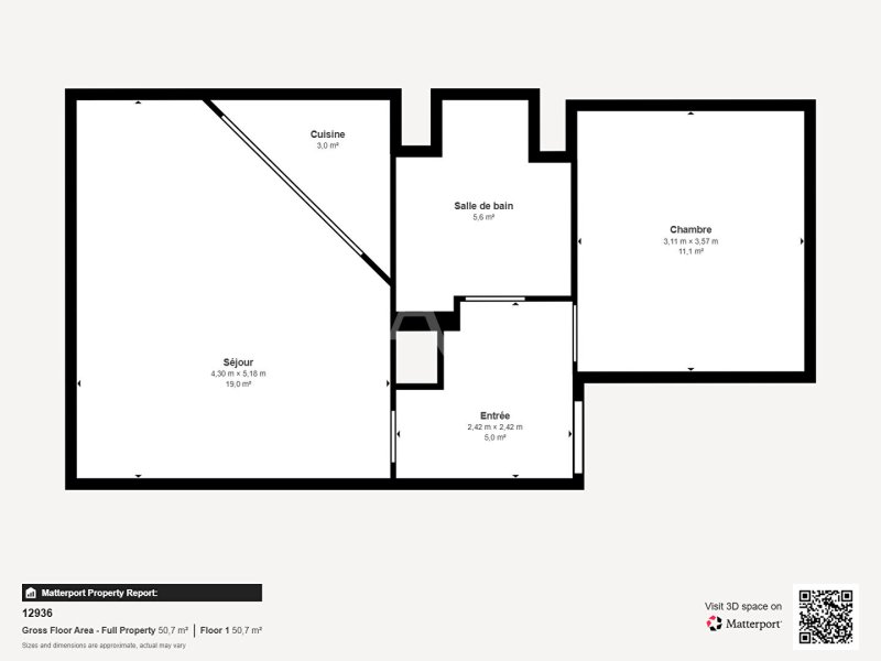 La chambre offre un espace nuit confortable, complété par une salle d'eau moderne.