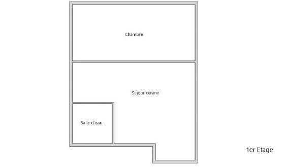 Le bien se compose comme suit : une entrée ouvrant sur une agréable pièce de vie avec cuisine ouverte, un coin bureau idéal pour le télétravail ou vos besoins professionnels, une grande chambre avec de nombreux rangements, ainsi qu'une salle d'eau avec WC.