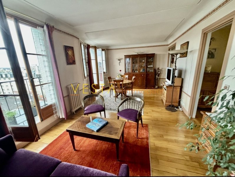 Le cabinet Vesta immobilier vous présente un produit rare à la vente sur notre ville :Dans un des plus beaux hausmanniens du centre ville (Entre croix de chavaux et Mairie) En dernier étage ,plein sud sans aucun vis a vis et dans une copropriété bien tenue ,un appartement 3 pièces de 75m² (71m²+ chambre de service de 4m² ).Le bien se présente comme suit : une entrée ,une cuisine US équipée ,un séjour (plein sud ) avec deux grandes portes fenêtres donnant sur balcons .2 chambres(nord ouest sur jardin ) ,une salle de bains et une salle d' eau ,WC séparés ,de nombreux rangements (dressing),une cave . parquet ,moulures ,cheminées . gardien ,digicode et visio. De nombreux travaux de copropriété ont été réalisés (ravalement isolation façade nord ,parties communes ,ascenseur etc...) Proximité immediate de toute commodités (Métro ,monoprix ,boulangerie ,pharmacie...) Parking possible . Une cave est vendue avec.