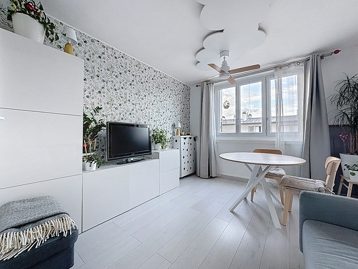 L'appartement se compose d'un grand séjour lumineux avec une cuisine ouverte aménagée, de deux chambres, d'une salle de bains, ainsi que de WC séparés.