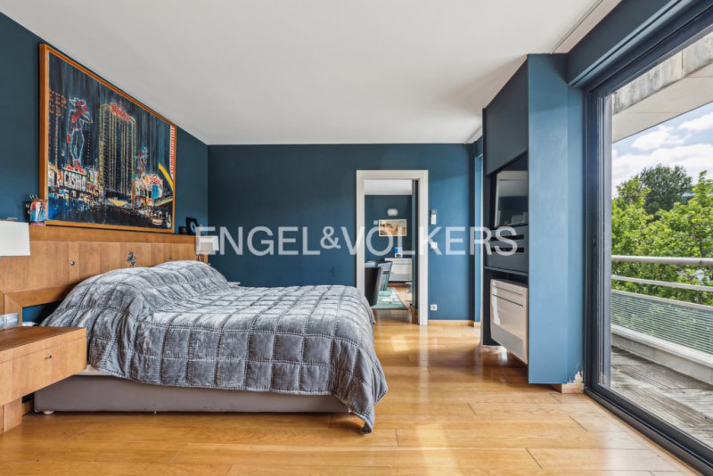 Conçue sur six niveaux avec ascenseur privatif, la maison développe environ 400 m² de surface Carrez, baignés de lumière, et s'ouvre sur 170 m² d'espaces extérieurs : larges terrasses plein sud, balcons, et un spectaculaire rooftop dominant le fleuve. Le séjour, majestueux, invite à la contemplation. La cuisine, indépendante, prolonge l'élégance par sa fonctionnalité.