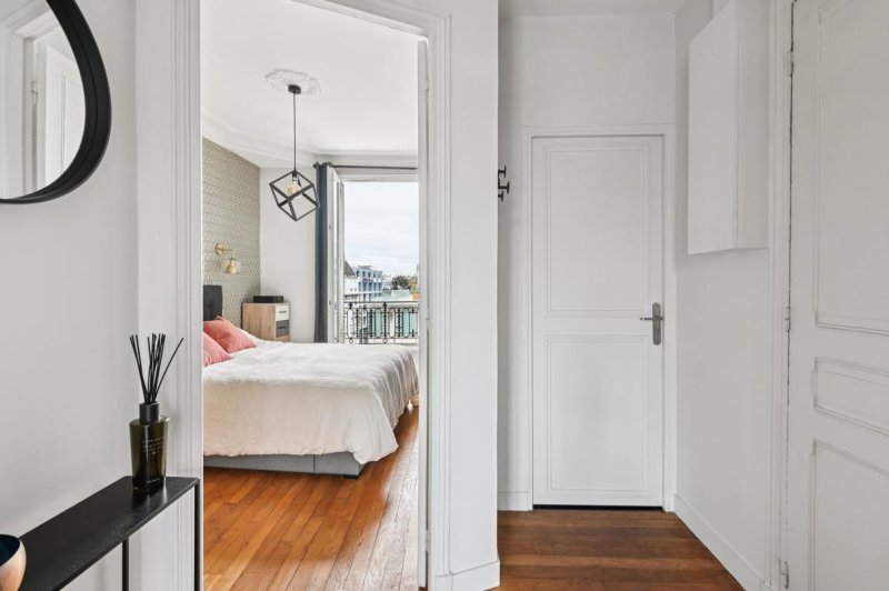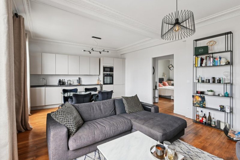 Lumineux, ce bien optimisé sans perte d'espace, a conservé les codes de l'ancien : moulures, grande hauteur sous plafond et cheminée fonctionnelle .