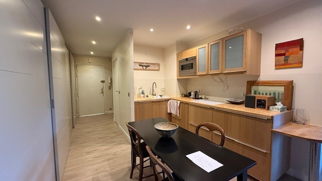 A VENDRE 66M2 TRAVERSANT LES HESPERIDES SAINT JAMES A NEUILLY SUR SEINE Dans une résidence services seniors au dernier étage de la résidence, bel appartement de deux pièces principales, anciennement trois pièces. Il comprend une entrée, un salon, une chambre, salle d'eau avec wc, cuisine à vivre, une buanderie et des toilettes séparées. Une cave en sous-sol. L'appartement a une double orientation, Sud pour le salon et Nord pour la chambre. Les deux orientations donnent sur jardin sans vis à vis. Un petit rafraichissement est à prévoir. S.DELOUVRIER: 06.32.80.58.83 Résidences services seniors