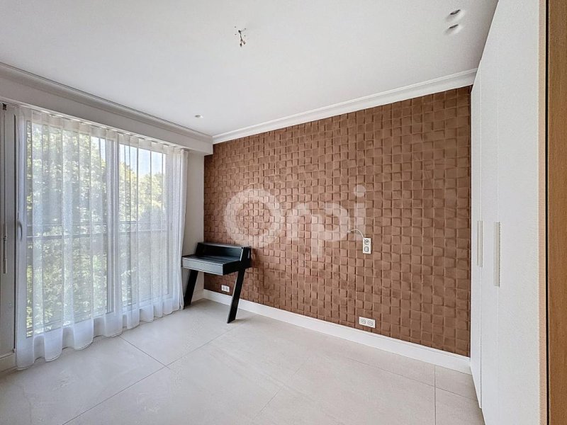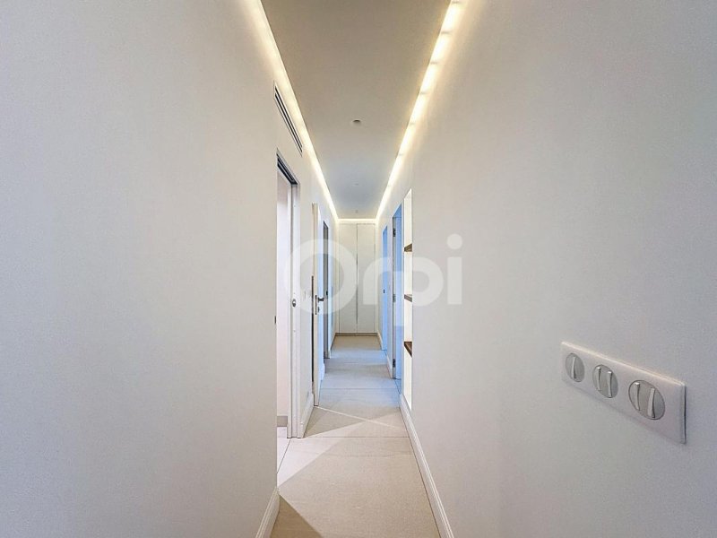 Cet appartement seul sur son palier, offre : un vaste séjour baigné de lumière avec balcon de 18 m², une cuisine en marbre très élégante aménagée et équipée, une buanderie, quatre chambres dont une spectaculaire suite parentale avec dressing, hammam, salle d'eau avec wc et une grande loggia.