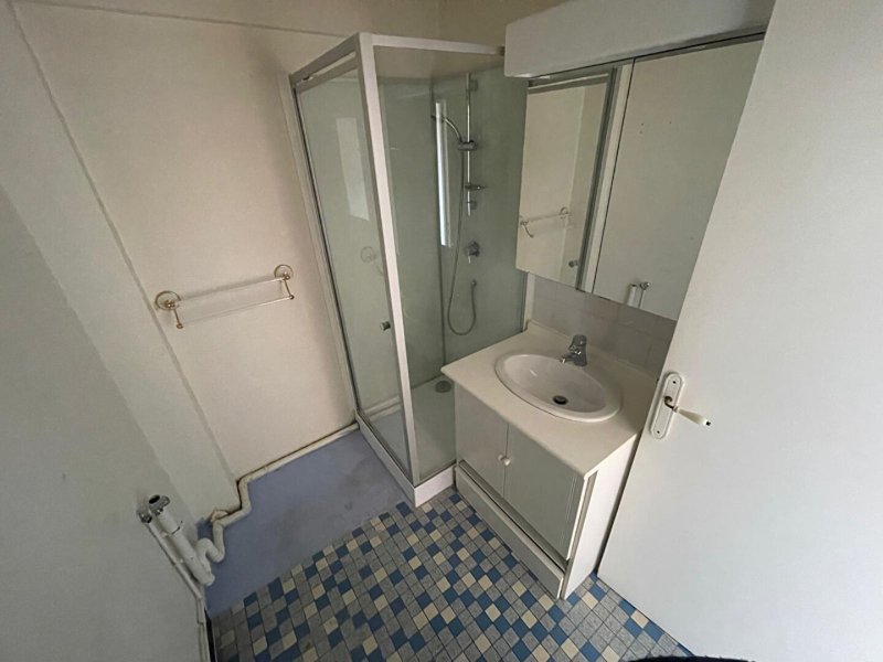 Une Salle d'eau avec WC de 4 m² équipé d'une douche (possibilité d'installer une baignoire qui était présente à l'origine) et d'un meuble vasque, avec carrelage d'origine au sol, donnant un charme rétro à la pièce. Elle est également équipée d'arrivées et d'évacuation d'eau pour les machines à laver.