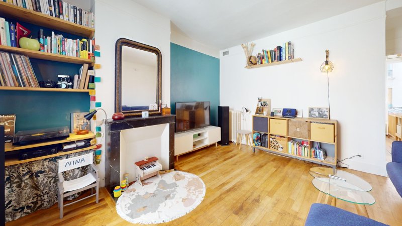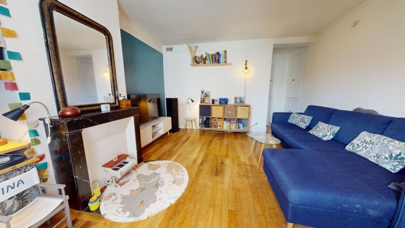 L'appartement, traversant et rénové avec soin, offre un parfait équilibre entre le caractère de l'ancien (parquet, cheminées, belle hauteur sous plafond) et le confort moderne (huisseries double vitrage, électricité aux normes, douche à l'italienne).