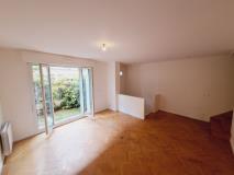 POISSY. Dans une résidence de Standing avec gardien, proche gare RER A, Ligne J, commerces et écoles. Appartement 3 Pièces DUPLEX exposition Sud Ouest composé d'une entrée, d'un séjour avec parquet donnant sur jardin privatif (10m2). Cuisine séparée. wc. A l'étage palier desservant 2 belles chambres avec placard (11,23m2 et 12,03m2) et une salle de bains. Fenêtres double vitrage. Chauffage individuel par radiateurs électriques. Possibilité d'acquérir séparement une place de parking en sous-sol (10 000 EUR FAI inclus)