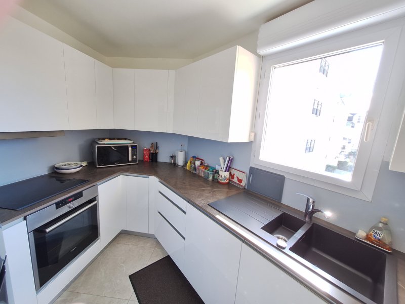 POISSY. Dans une résidence de Standing avec gardien. Appartement 4 Pièces de 84,50m2 lumineux et spacieux composé d'une entrée avec placard, d'une cuisine séparée aménagée (Eléments hauts et bas neufs), d'un séjour double (33m2) donnant sur balcon et loggia fermée (15m2), d'un dégagement avec placard, 2 chambres dont 1 avec 2 placards, d'une salle d'eau, d'un wc séparé. Un double garage au sous-sol complète ce bien. APPARTEMENT AUX PRESTATIONS DE QUALITE EN PARFAIT ETAT.