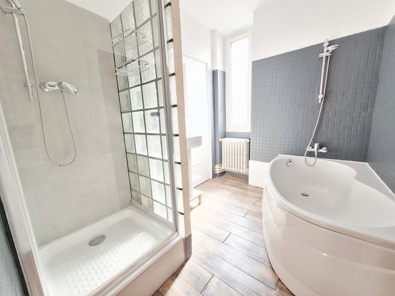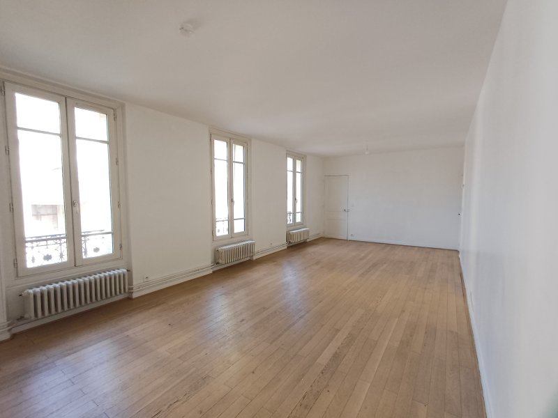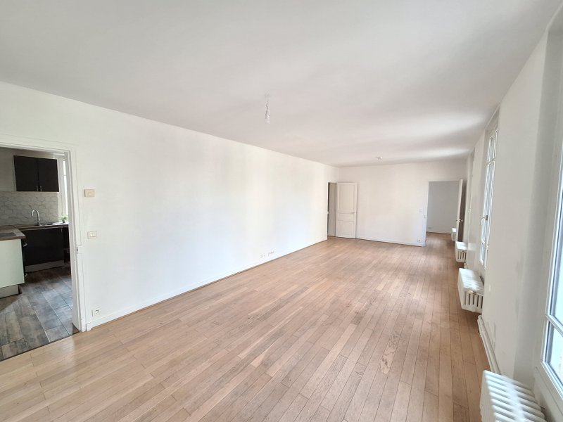 POISSY. Dans immeuble ancien en face de la collégiale, à 5' de la gare, du centre-Ville, des commerces et du Parc Meissonier, ce grand appartement de 6 pièces (97m2) situé au 1er étage sans ascenseur se compose d'une entrée avec placard, d'une cuisine séparée et semi-équipée, d'un double séjour de 30m2 avec parquet ancien et belle hauteur sous plafond, de 4 chambres spacieuses (11,60 ; 11,70 ; 11,80 et 11,90m2), d'une salle de bains avec baignoire et douche et 2 WC séparés. Il vous fait bénéficier d'une cave de 10m2. L'eau chaude et le chauffage sont individuels par chaudière au gaz.