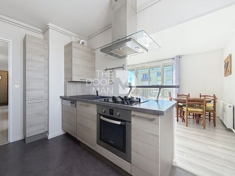 Le salon/salle à manger est lumineux grâce à sa baie vitrée donnant sur un petit balcon à la vue dégagée.