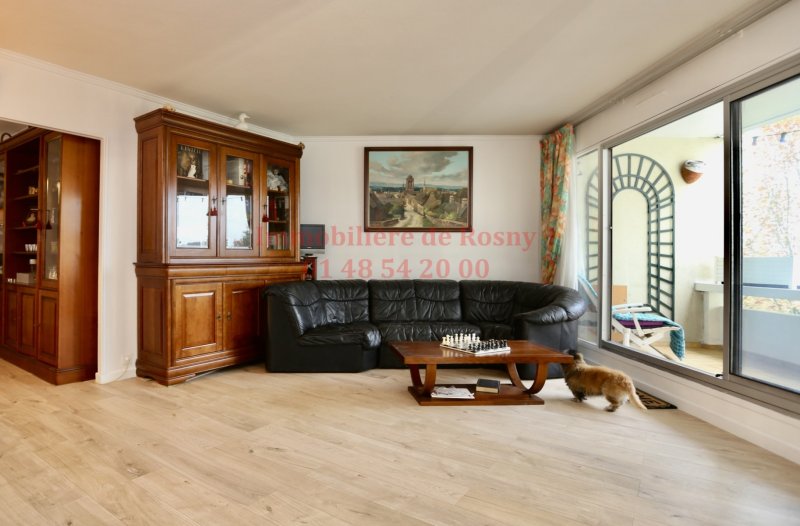Appartement avec une vue imprenable ! Proche commerces et transports ! Au 3ème étage d'une résidence sécurisée et bien entretenue, un appartement 4 pièces traversant comprenant une belle entrée, séjour avec grand balcon, salle à manger, cuisine séparée avec cellier, dégagement avec plusieurs placards et coin bureau, 1ère chambre avec placards, salle de bains et balcon, 2ème chambre avec placards, salle d'eau et balcon également, WC séparés. Appartement en très bon état général, aucun travaux à prévoir ! Possibilité avec une cloison d'avoir 3 chambres qui a déjà sa porte sur le couloir. Chaque pièce, séjour, salle à manger, et les 2 chambres, possède son propre balcon. Le balcon du séjour offre une vue dégagée, lointaine et sans aucun vis-à-vis sur la nature avec une exposition SUD ! À 5min à pied du Métro 11 La Dhuys ! Place de parking couverte. Bien soumis à la copropriété.