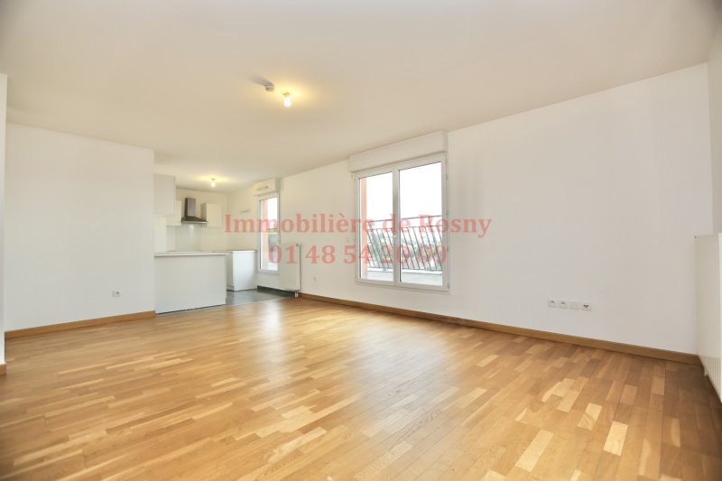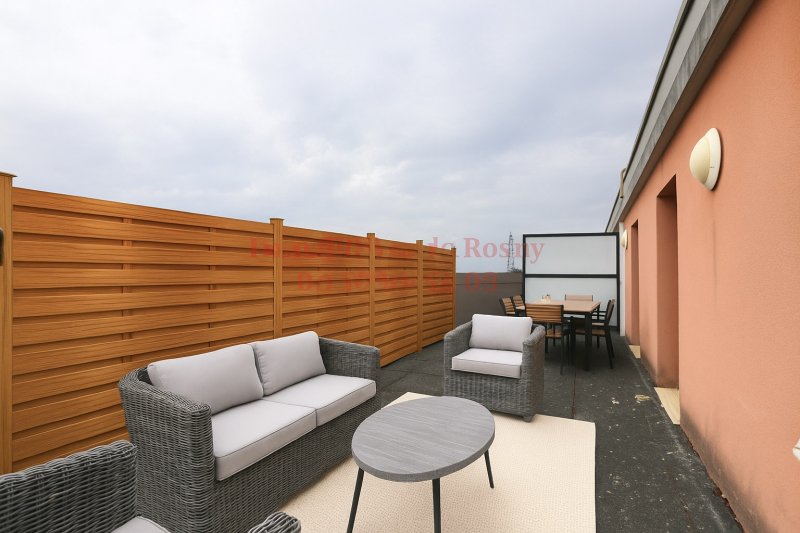 DERNIER ÉTAGE - TERRASSE - RER E - MÉTRO 11 Au 5ème et dernier étage d'un immeuble de 2013 ! Un appartement 4 pièces comprenant une entrée, un grand séjour de plus de 25m2 exposé Sud-Ouest + cuisine d'environ 8m2, 3 chambres, salle de bains et WC séparés. Parking en sous-sol. Vue dégagée et aucun vis-à-vis ! Terrasse accessible par toutes les pièces de l'appartement ! RER E et Métro 11 Bois-Perrier à 12min à pied ! Bien soumis à la copropriété.