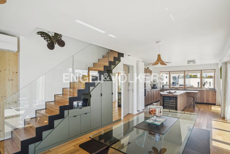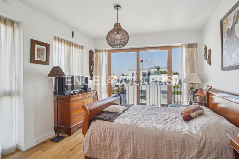 Comme une maison perchée sur le toit, ce duplex d'exception de 134,52m² Carrez avec plus de 130m² d'espaces extérieurs offre un cadre de vie rare, au 7e et dernier étage d'une résidence récente (2022) signée Wilmotte & Associés.