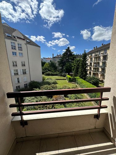 Centre ville, beau 3 pièces de 66,49m², refait à neuf, comprenant : entrée, séjour sur balcon avec vue sur parc de la résidence, dégagement avec dressing, 2 chambres, salle de bains, WC et parking en sous-sol.