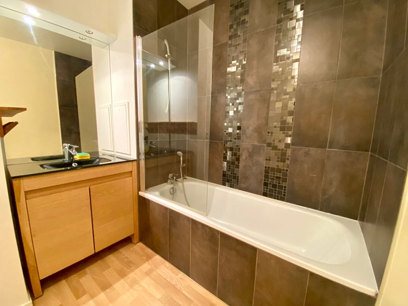 Grande entrée, séjour donnant sur balcon, cuisine américaine équipée et aménagée, salle de bains spacieuse, et wc.