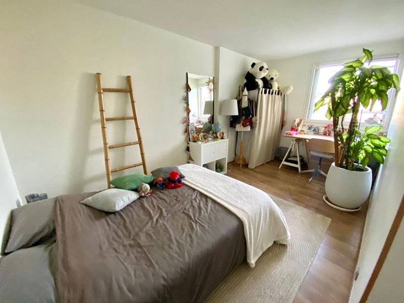 Vaste entrée avec placards, séjour très lumieux donnant directement sur balcon exposé sud, grande cuisine aménagée et équipée de 9 m² avec buanderie attenante, chambre si on réduit le séjour. Dans la seconde partie de l'appartement, couloir avec placards donnant sur espace nuit avec 2 belles chambres dont 1 de presque 13 m², salle de bain, et wc.