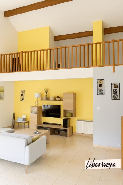 Dès l'entrée, le séjour cathédrale de 49 m² impressionne par ses volumes et sa luminosité. Un espace chaleureux, baigné de lumière naturelle, où se mêlent moments conviviaux et sérénité. Il s'ouvre sur une terrasse plein sud de 53 m² et un jardin privatif de 285 m², invitant à profiter du grand air été comme hiver.