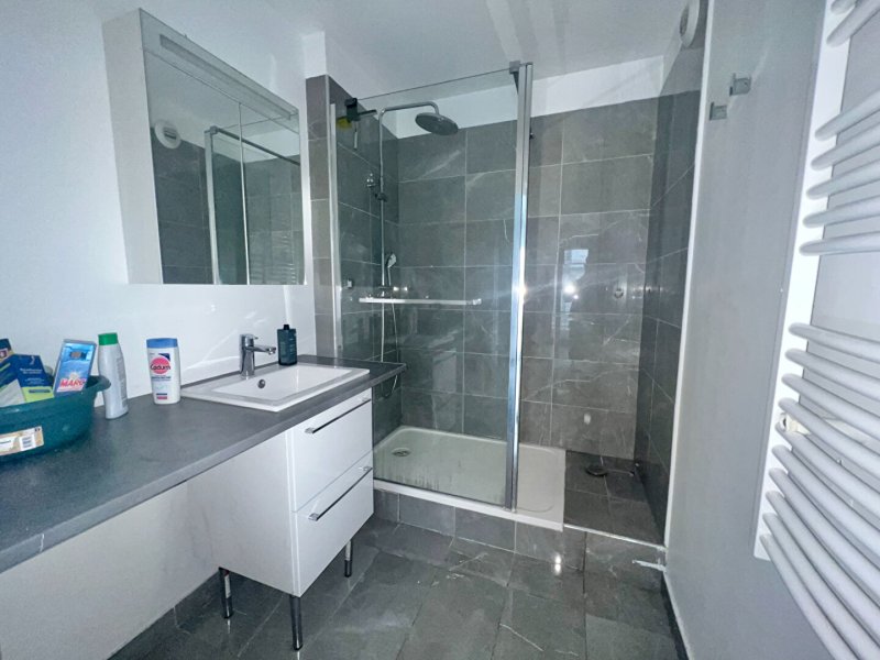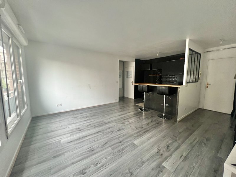 A seulement 2 minutes du métro Porte de Paris , au sein d'une copropriété récente de 2005 bien habitée et entretenue , confortable F2 de 44 m² : séjour avec cuisine US équipée aménagée, rangements ,chambre , salle d'eau refaite à neuf, wc séparé.