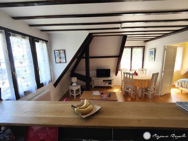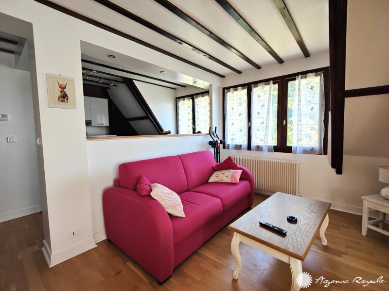 SAINT GERMAIN EN LAYE - 16mn RER, Calme, Bus sur place pour le RER Dans une Maison divisée, au 2ème et dernier étage, bel Appartement en bon état de 38,41m² (43,91m² au sol) + JARDIN PRIVATIF de 151m² : Entrée, Séjour lumineux parqueté avec poutres, Grande Cuisine américaine équipée, Belle Chambre parquetée lumineuse de 11m², Salle de Bains, emplacement de PARKING EXTERIEUR. Pas de vis à vis. Arrêt de bus pour le RER A à proximité immédiate. AGENCE ROYALE - Elsa KROULEFF, à vos côtés pour tous vos projets immobiliers depuis 1988.