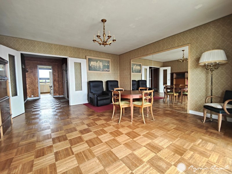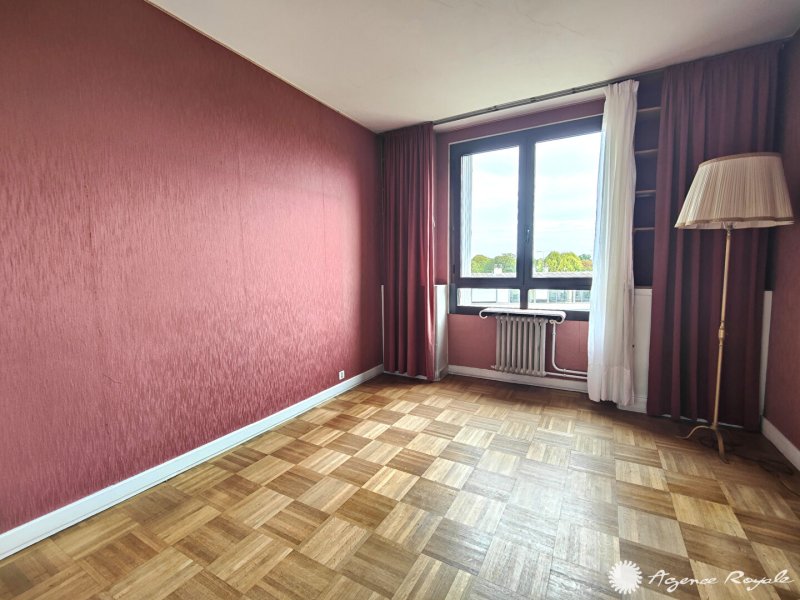 Dans une Résidence avec ASCENSEUR, Appartement de 77,10m² avec Balcon SUD OUEST de 11m² et vue dégagée : Entrée avec parquet, Séjour parqueté sur BALCON de 11m² exposé Sud-Ouest, Cuisine, Cellier, 2 grandes Chambres de 12,60 et 14,80m² (dont une sur BALCON), Salle de Douche, Cave. PARKING sous-sol. Chauffage urbain.