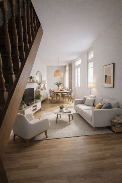 Dans immeuble historique où vécu Voltaire, 3 Pièces en Duplex de 56.55m² Loi Carrez (61,62m² au sol) entièrement rénové comprenant : Séjour parqueté de 23m², Cuisine équipée, 2 Chambres parquetées dont une avec Dressing, Salle de Douche avec fenêtre, WC. Bureau Indépendant chauffé et en bon état (idéal pour télétravail ou atelier), Cave. Excellent état. Calme et très central.