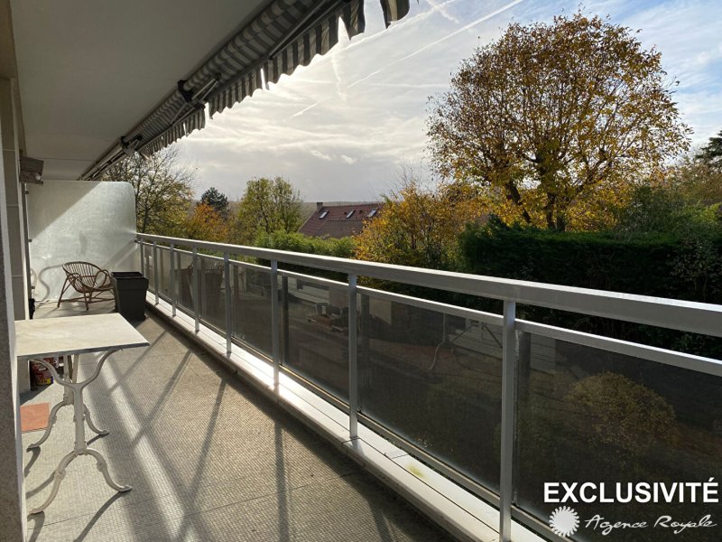 SAINT GERMAIN EN LAYE - Proche LYCEE INTERNATIONAL Dans résidence de standing avec ASCENSEUR, tennis et air de jeux, Appartement traversant de 88,23m² + 25m² de BALCONS avec très belle vue dégagée sans vis à vis : Entrée, Séjour double avec parquet sur grand Balcon-Terrasse exposé Ouest avec vue sur les jardins et sur le château du Lycée International, Cuisine, 2 Chambres avec parquet sur BALCON, Salle de Bains, Salle de Douche, Dressing, CAVE, PARKING SOUS-SOL. Beaux espaces verts, résidence de qualité fermée. EXCLUSIVITÉ AGENCE ROYALE - Elsa KROULEFF, à vos côtés pour tous vos projets immobiliers depuis 1988.
