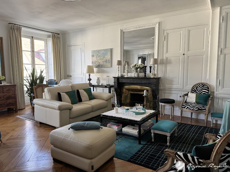 SAINT GERMAIN EN LAYE Plein centre - 1' du RER Dans un bel immeuble ancien, Appartement lumineux de 75,77m² en excellent état comprenant : Entrée avec Placards, Séjour Double de 31m² avec Cheminée, Moulures et parquet point de Hongrie, Cuisine équipée, 2 belles chambres avec parquet et placards, Salle de Bains et une belle Cave voutée de 9m². Beaucoup de charme, bel emplacement aux pieds du RER, proches des commerces... EXCLUSIVITE AGENCE ROYALE - Elsa KROULEFF 06 11 99 10 31, à vos côtés pour tous vos projets immobiliers depuis 1988.