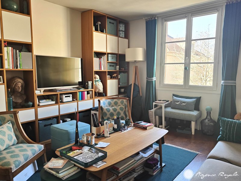 Dans petite copropriété, Appartement ancien en très bon état comprenant : Entrée privative avec Placards, Séjour - Salle à manger avec Cuisine américaine équipée le tout de 35m² exposé Ouest avec vue dégagée sans vis à vis, 2 Chambres avec parquet et Placards, Bureau, Dressing, Salle de Douche, Buanderie. Très peu de charges. Logement en consommation excessive.