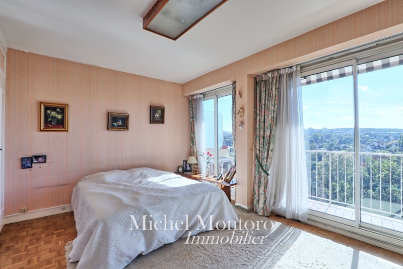 Michel Montoro Immobilier vous propose en exclusivité, à Saint-Germain-en-Laye, dans le quartier recherché des collèges et des lycées, ce bel appartement de 133 m² situé en étage élevé, à 15 minutes à pied du RER et à 2 minutes des bus. Il se compose d'une entrée avec penderie, d'un vaste séjour traversant de 56 m² exposé plein Sud ouvrant sur balcon, d'une cuisine aménagée, deux chambres donnant sur balcon, d'une salle de bains, d'une troisième chambre avec sa salle de douche, d'un WC indépendant et de nombreux rangements. Une quatrième chambre est possible. Sans aucun vis-à-vis, l'appartement offre une vue imprenable et un ensoleillement généreux. En complément : une cave, un parking en sous-sol, ainsi qu'une chambre de 9 m², idéale pour du rangement ou un espace annexe. Un box est également disponible en option. La copropriété est bien entretenue : hall récemment rénové, balcons refaits à neuf, façade en cours de nettoyage. L'appartement bénéficie de double vitrage. Calme, lumineux, avec un beau potentiel et quelques travaux à prévoir, ce bien constitue une belle opportunité en coeur de ville.
