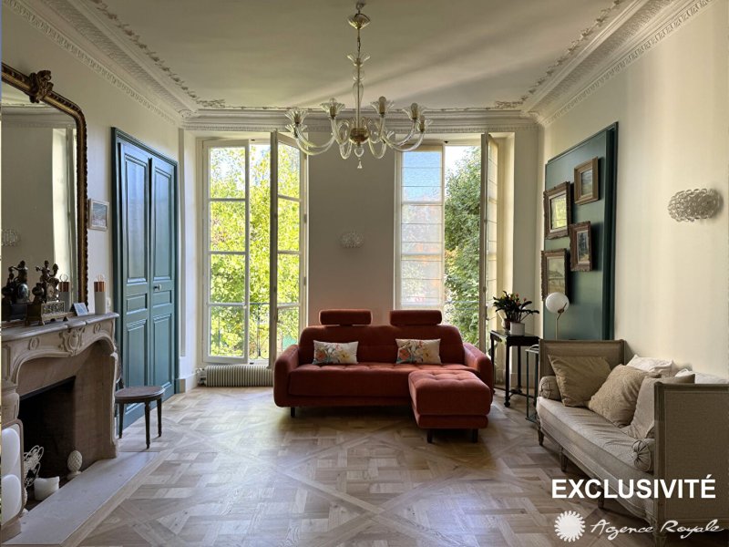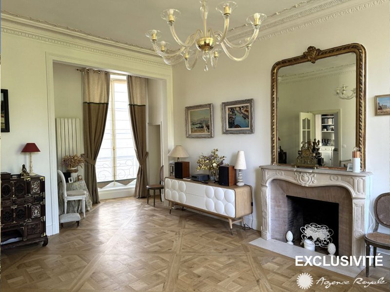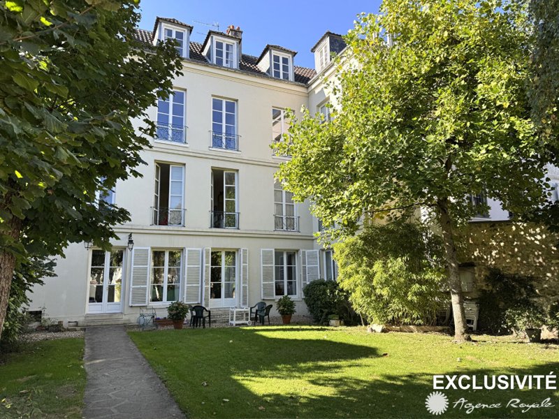 SAINT GERMAIN EN LAYE Quartier historique Noailles, 7' RER Dans petit Hôtel Particulier du XVIII ème avec Jardin clos et partagé, Superbe Appartement lumineux entièrement rénové de 121,72m² en excellent état réparti sur deux niveaux. Au 1er étage sur 99,64m² : Entrée avec placard, Séjour traversant et lumineux avec magnifique parquet, cheminée, très belle vue sur le Jardin, grande Salle à Manger avec Parquet, Bibliothèques, Cuisine équipée, Grande Chambre de 34m² avec cheminée, Parquet, nombreux placards (possibilité de deux Chambres), Salle de Douche et Buanderie avec Fenêtre, Magnifique parquet Versailles entièrement rénové, Belle Hauteur sous plafond de 3,15m, moulures. Au 3ème étage : 2 belles Chambres indépendantes dont une avec Salle de Douche. Parking extérieur dans la copropriété, Parking sous-sol à 2 minutes en sus du prix . Aucun vis à vis, vue sur verdure des deux côtés de l'appartement, faibles charges, cadre de vie exceptionnel, beaucoup de charme. EXCLUSIVITÉ AGENCE ROYALE - Elsa KROULEFF, à vos côtés pour tous vos projets immobiliers depuis 1988.