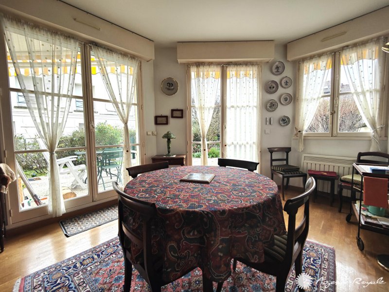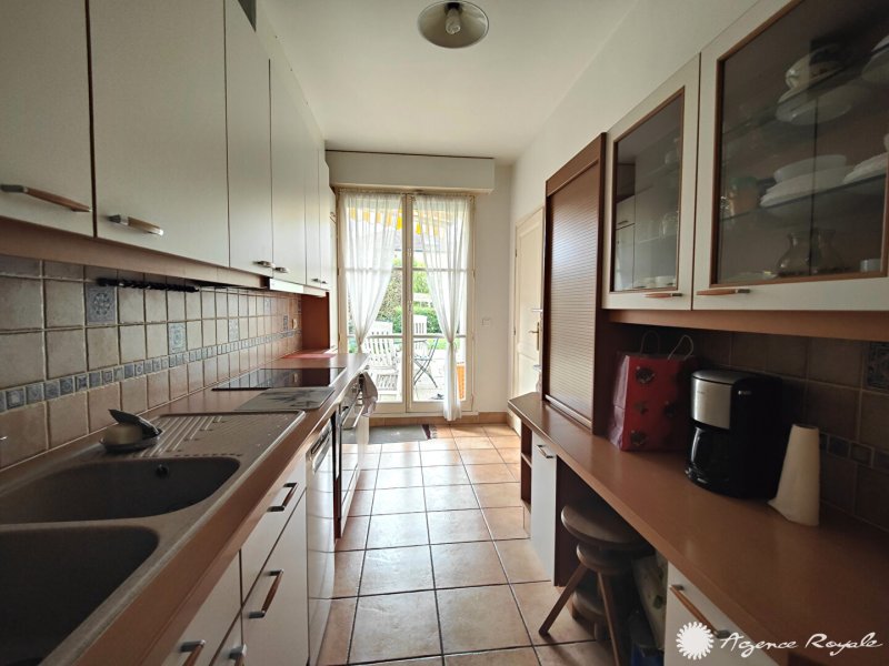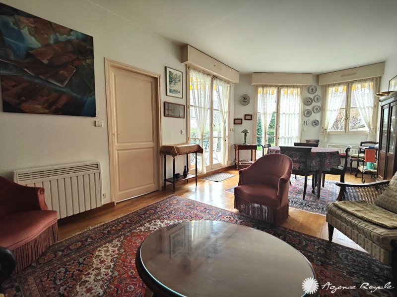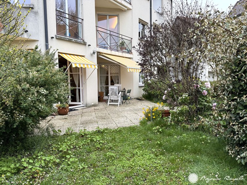 SAINT GERMAIN EN LAYE - 1' Place du marché, Superbe emplacement, Très Calme Dans Résidence, Appartement de 109.85m² + JARDIN Sud de 90m² : Entrée, Séjour de 31m² sur TERRASSE et JARDIN Sud, Cuisine équipée sur TERRASSE et JARDIN, 3 Chambres de 13m², Salle de Bains, Salle de Douche, Buanderie, Cave, GARAGE DOUBLE 25m² motorisé. Très calme. Très bel emplacement à proximité de toutes les commodités. AGENCE ROYALE - Elsa KROULEFF 06 11 99 10 31, à vos côtés pour tous vos projets immobiliers depuis 1988.