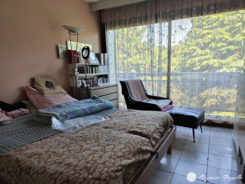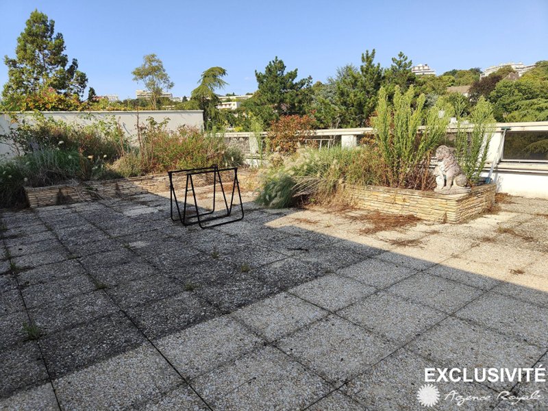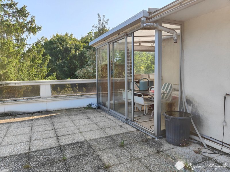 Dans Résidence avec très beaux espaces verts et tennis, au DERNIER ETAGE avec ASCENSEUR, Appartement de 81,72m² avec Terrasse de 85m² avec superbe vue et nombreuses possibilités d'aménagement : Entrée, Séjour sur Balcon avec vue sur jardin, Cuisine aménagée, 2 Chambres avec placards donnant sur Balcon, Salle de Douche, Cave et Parking Couvert. Local vélos. Bus devant la résidence.