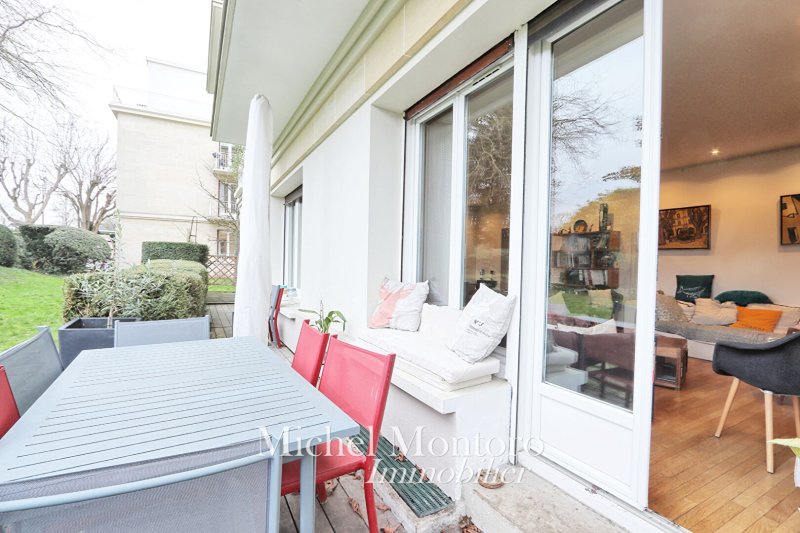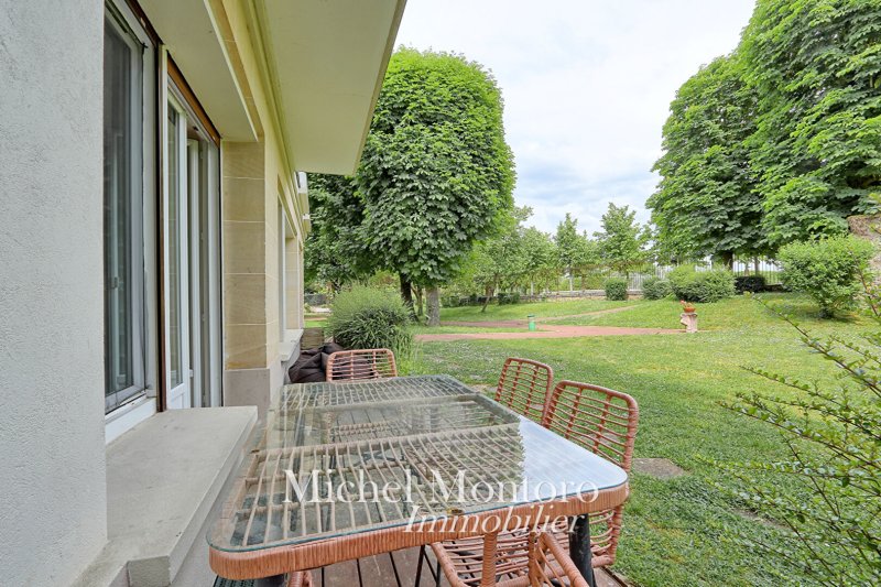 EXCLUSIVITÉ Michel Montoro Immobilier à SAINT-GERMAIN-EN-LAYE À seulement deux pas du Château et du RER, dans l'un des quartiers les plus prisés de Saint-Germain-en-Laye, découvrez ce bien rare de 150,52 m², situé dans une résidence de standing avec accès direct au parc du Château. Cet appartement familial, au calme absolu et entouré de verdure, offre de superbes volumes et une distribution idéale. Il se compose d'une vaste entrée, d'un double séjour lumineux ouvrant sur une petite terrasse et le jardin commun de la copropriété, d'une cuisine équipée avec espace repas, d'une chambre parentale avec dressing, une salle d'eau, de trois chambres, d'un espace lingerie et d'une salle de bains. Deux caves viennent compléter ce bien. Possibilité de louer un emplacement de stationnement.