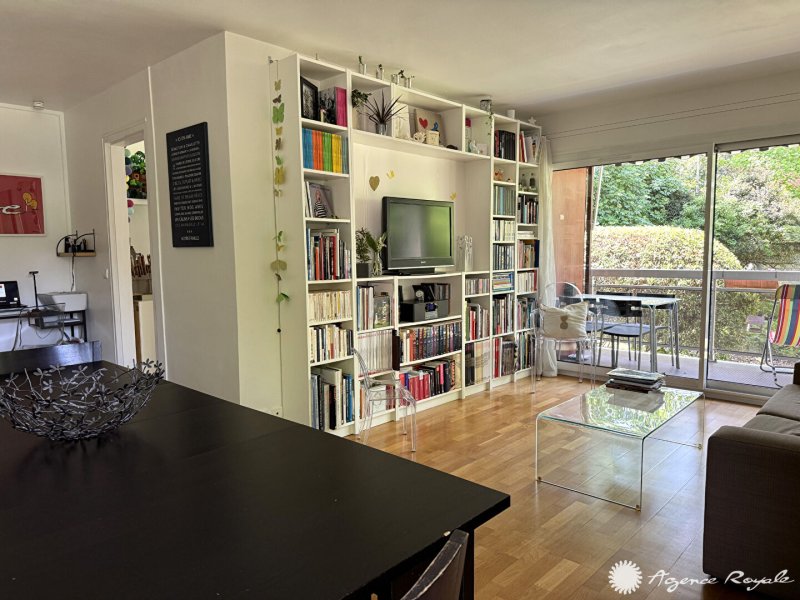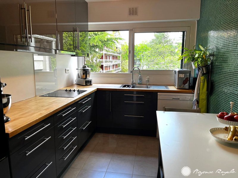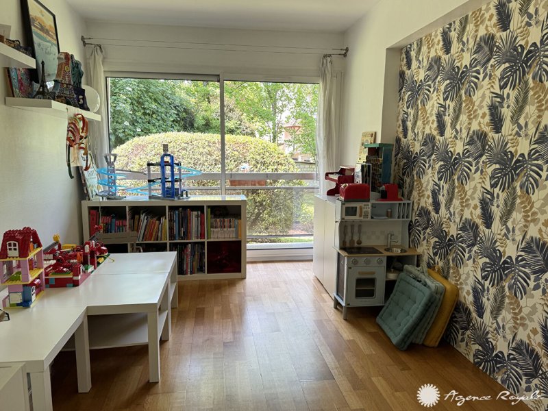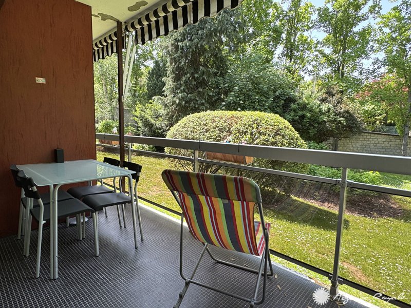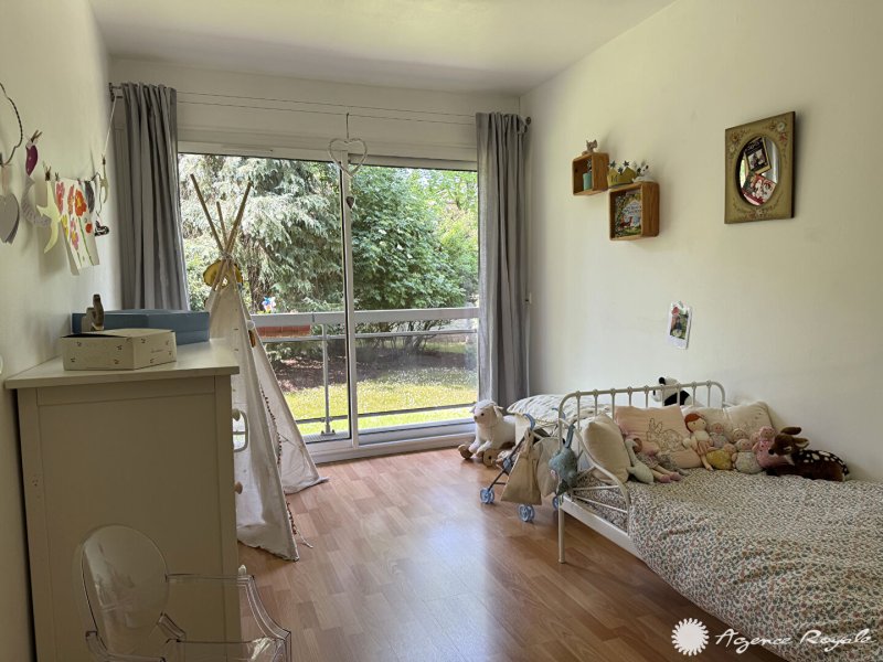 Dans Résidence avec très beaux espaces verts et tennis, Bel Appartement de 109,91m² avec TERRASSE-BALCON de 14m² en bon état, très belle vue sur parc arboré : Entrée avec placards, Séjour parqueté sur TERRASSE-BALCON Ouest avec vue dégagée sur jardin, Cuisine équipée avec espace Buanderie, 4 Chambres toutes sur BALCON, Salle de Bains, Salle de Douche, Cave, PARKING. Local vélos. Bus devant la résidence.