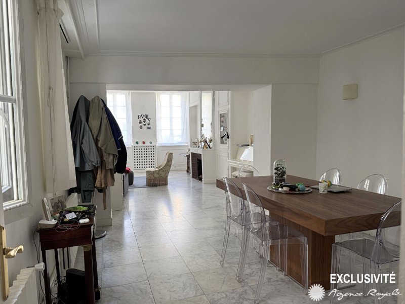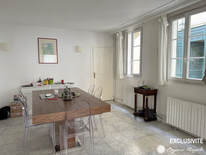 SAINT GERMAIN EN LAYE 10' RER A 10' du RER A et 5' de la place du marché. Dans immeuble ancien Triplex de 102m² loi Carrez (113m² au sol) : Entrée privative, Réception de 42m² avec cheminée et sol marbre, Cuisine équipée de 15m² avec espace repas, 2 Chambres avec parquet, 2 Bureaux avec parquet, Placards, Salle de Bains + Douche, Salle de Douche, Cave et Débarras. Toiture neuve. Possibilité d'acquérir un Parking Sous-sol en sus du prix. EXCLUSIVITÉ AGENCE ROYALE - Elsa KROULEFF, à vos côtés pour tous vos projets immobiliers depuis 1988.